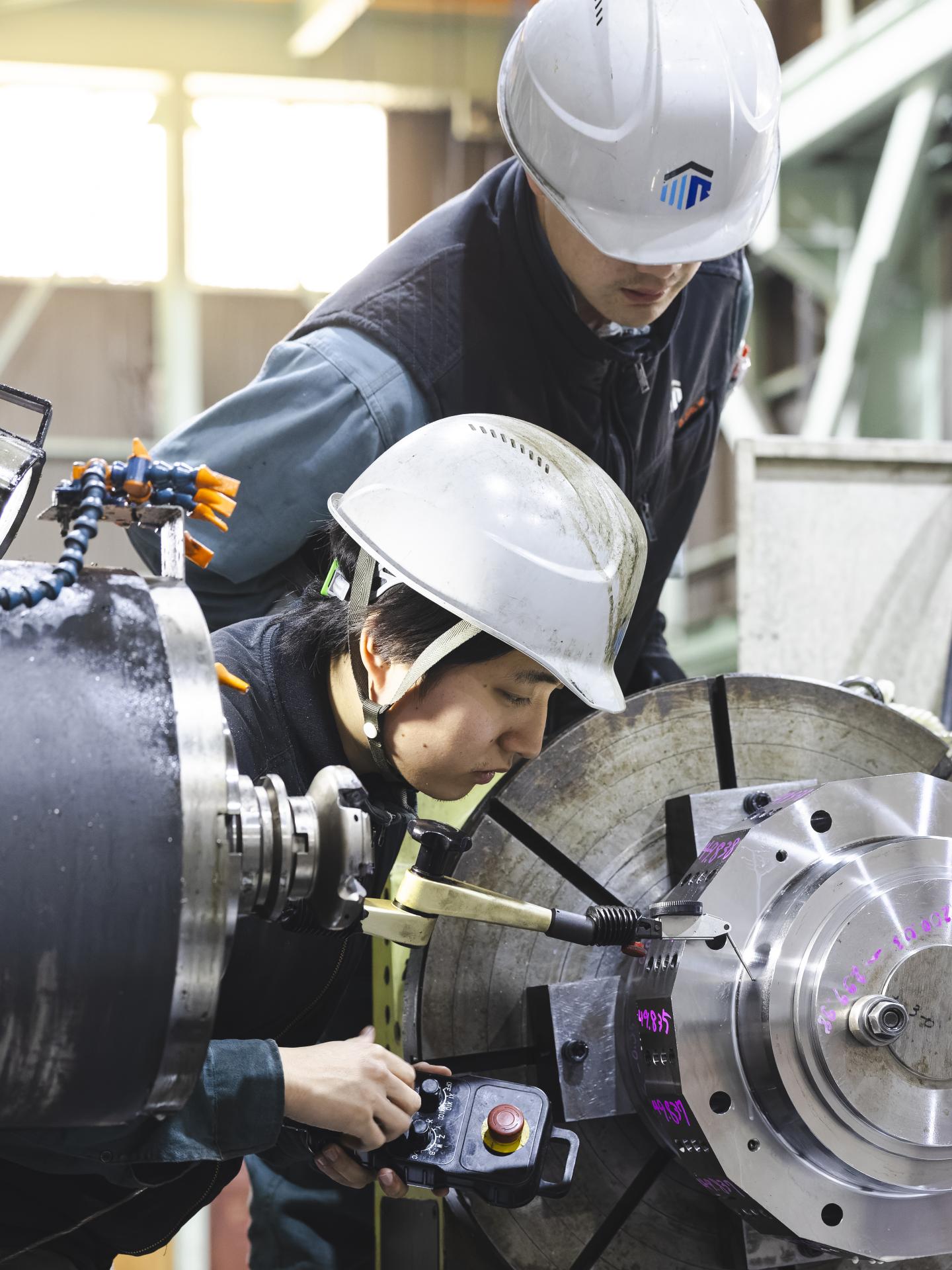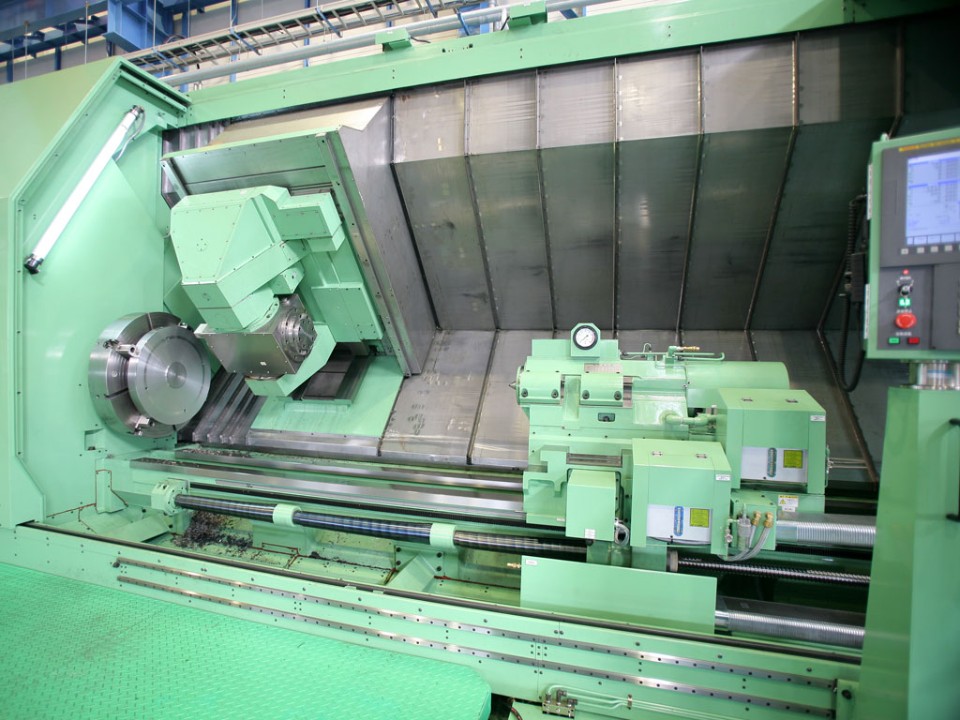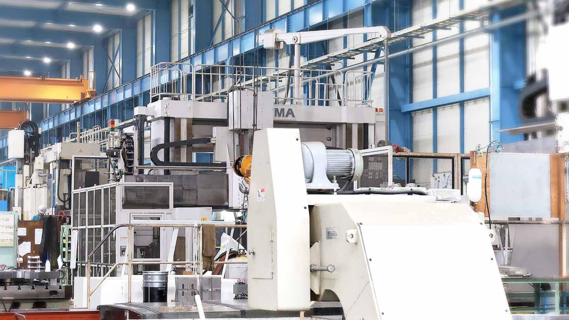 大型CNC旋盤、門型五面加工機、10m対応円筒研磨機など、長尺・大物加工のための設備を整えています。